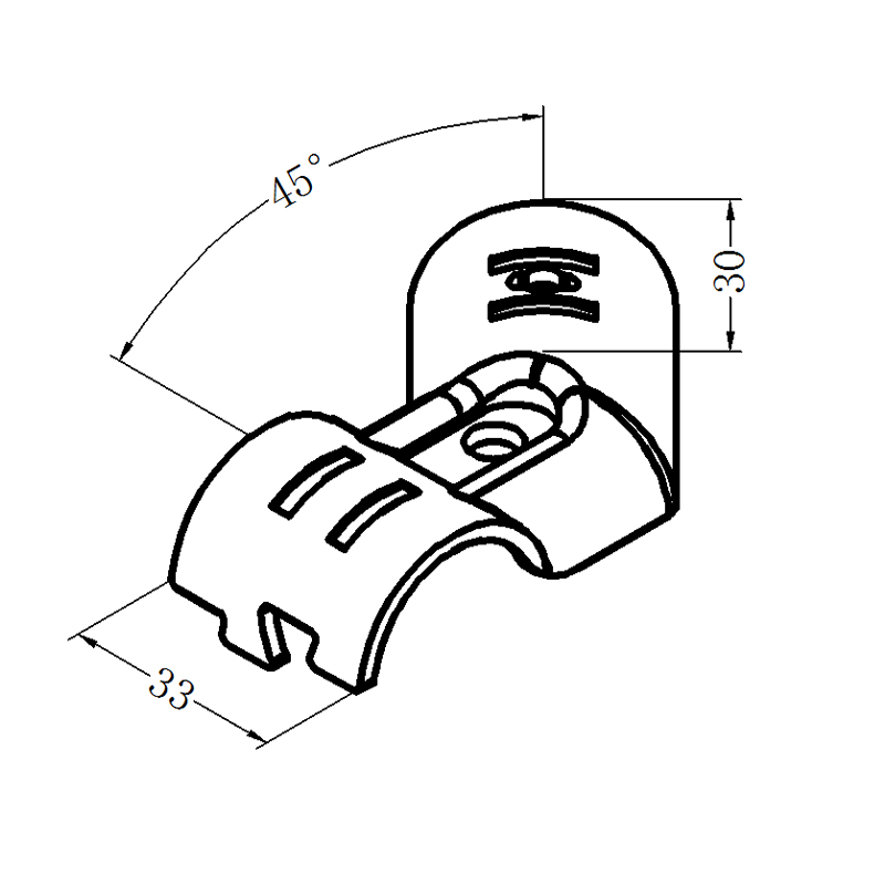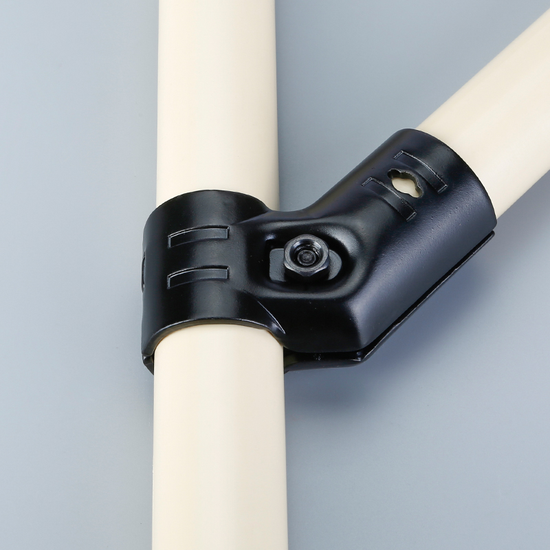 Fasten one piece JY-10A and JY-10B to two D28mm lean pipes, and secure them with one set of M6*25 screw nuts. The two lean pipes can form a 45° structure.