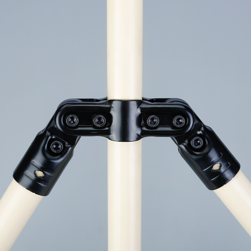 Two JY-14 are respectively clamped at both ends with two JY-6 pieces. After connecting three D28mm lean pipes, they are locked with six sets of M6*25 screw nuts. The lean pipes and the joints form a structure that can be adjusted 180° on both sides.
