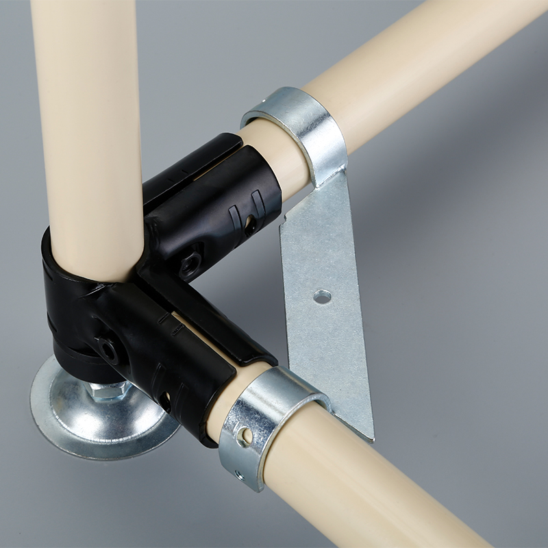 (1)Clamp both ends of the JY-20 angle iron onto the lean pipe, and pass the nuts through the small holes at both ends of the angle iron to fix the angle iron onto the lean pipe. Fix the panel with screws through the holes in the middle of the Angle iron.
