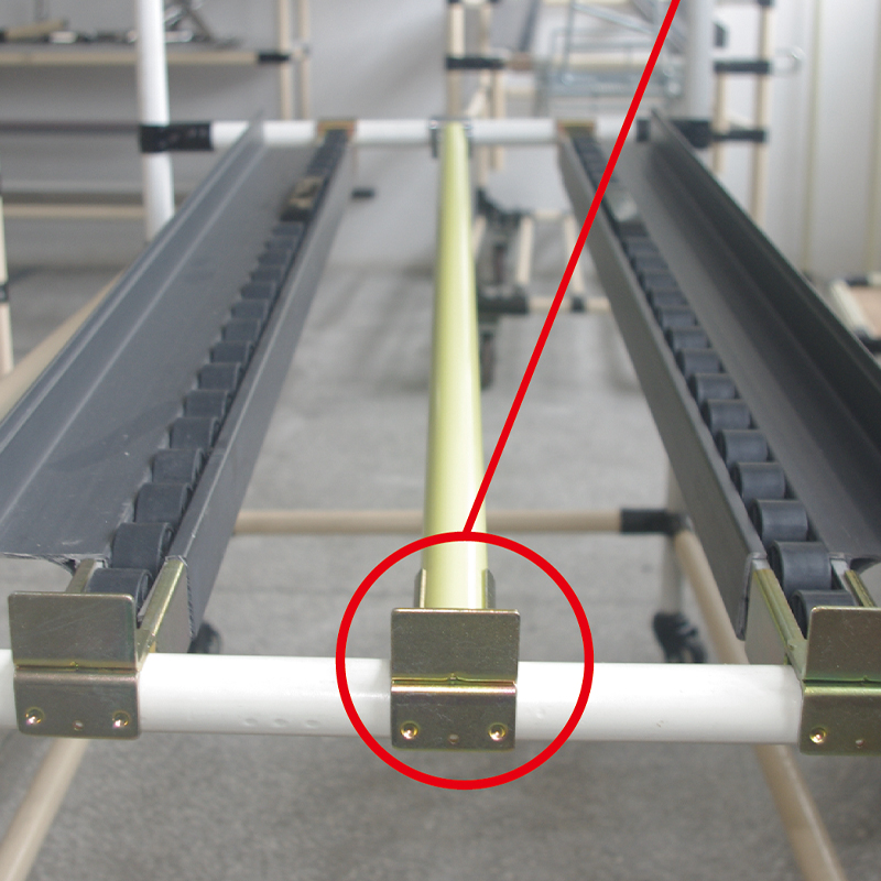(1)The head of the lean pipe joint is fastened to the lean pipe, and the tail of the pipe is connected to the lean pipe. The head stop block can block and limit the goods.