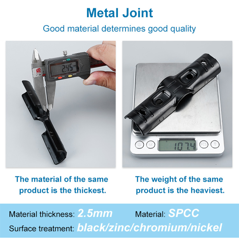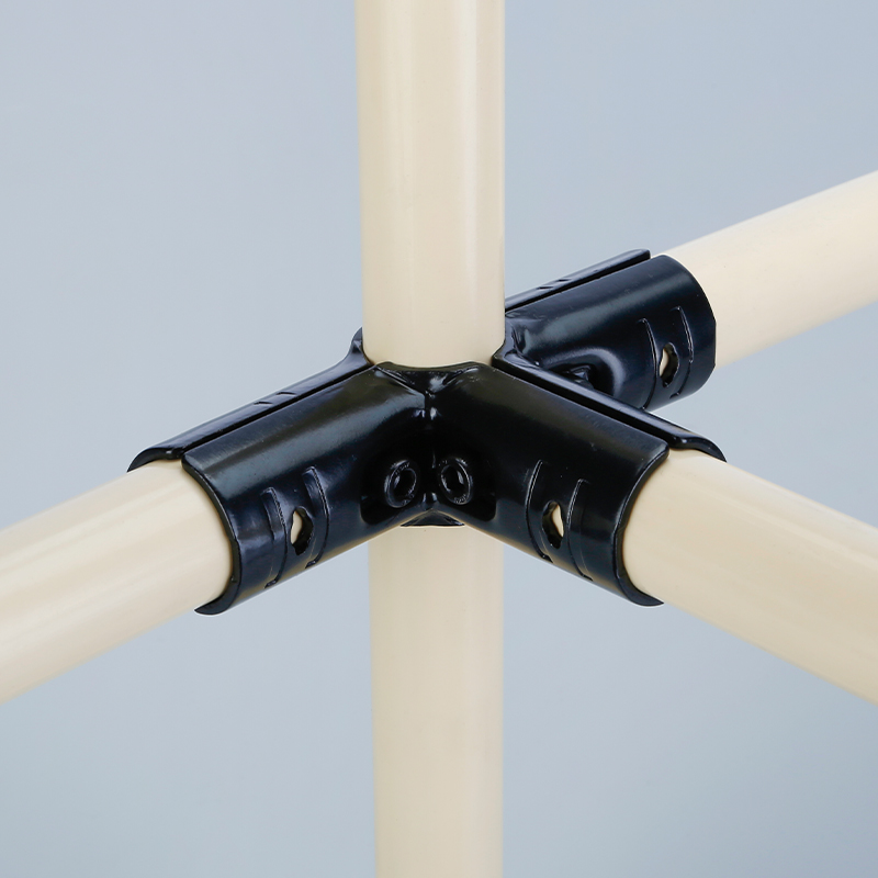 (1)When two pieces of JY-4 are fastened together, three D28mm lean pipes can be connected. Two sets of M6*25 nuts are tightened with a hex wrench, and the metal joint and the lean pipe form a cross-shaped structure.