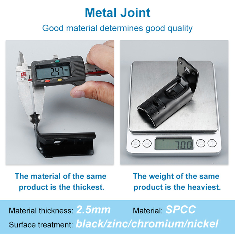 Two JY-40 clamp a D28mm lean pipe and lock it with a set of M6*25 screws. The holes at the bottom of the metal joint can be connected to the ground through M6 screws or industrial aluminum profiles.