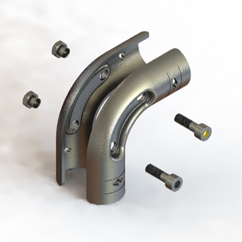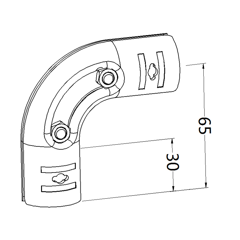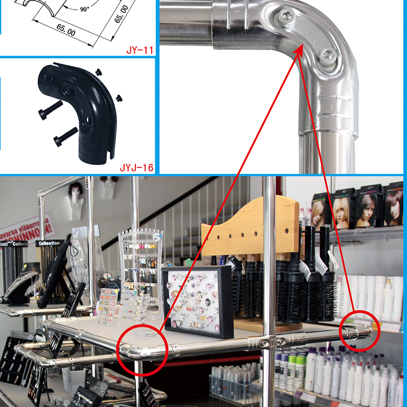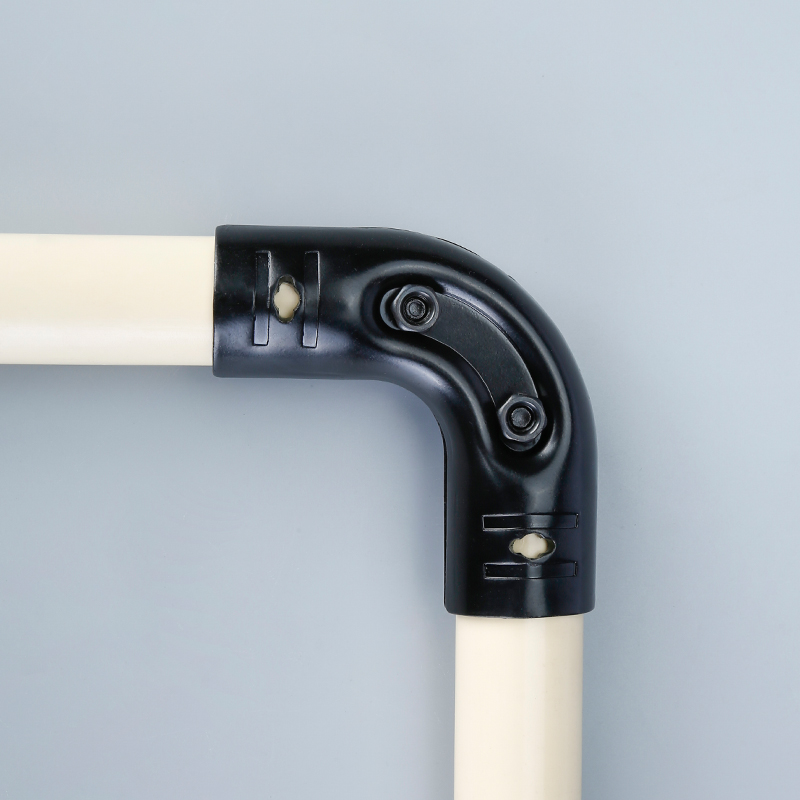 The arc right-angle joint, a metal joint and two lean pipes form a 90° arc structure. This structure is usually used as a trolley handle or as a transition to an arc.