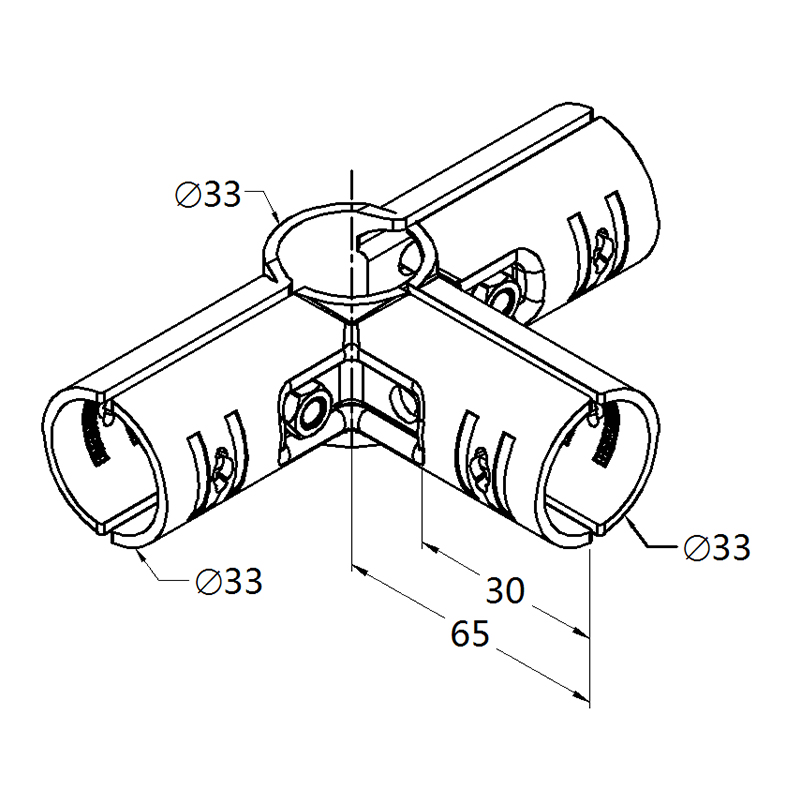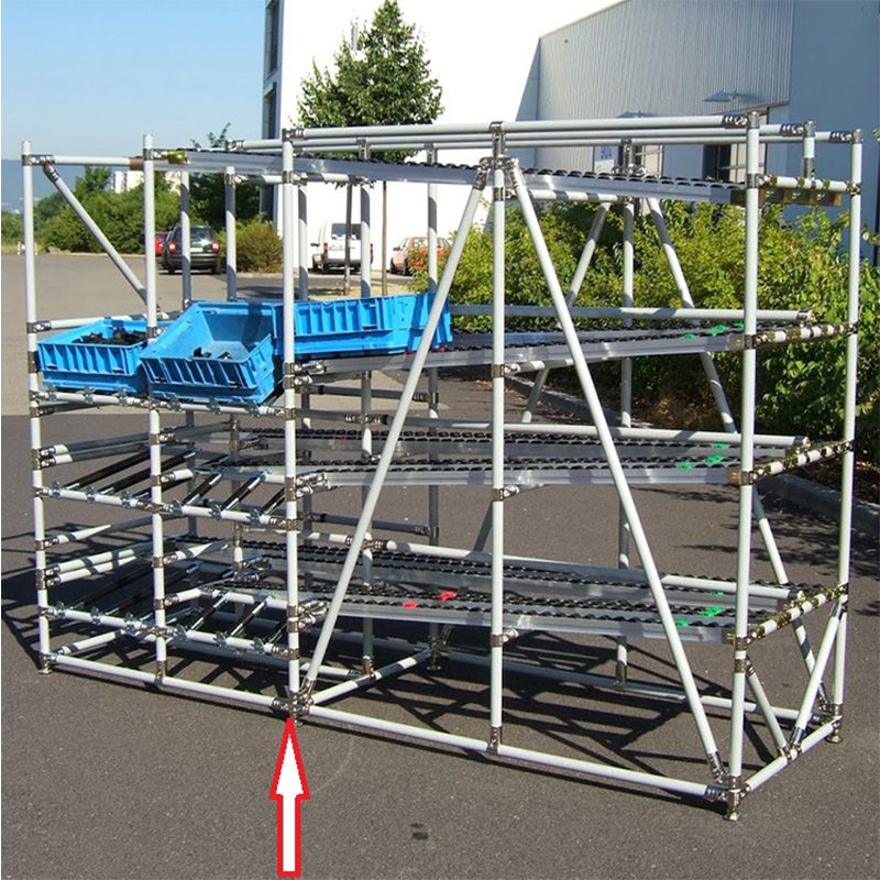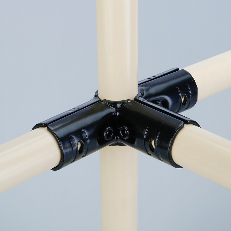 Double right-angle metal joint, the metal joint and the lean pipe form two right angles. The back can be parallel and closely attached to the wall, and the middle part extends outward. This is the main structure for building the framework.