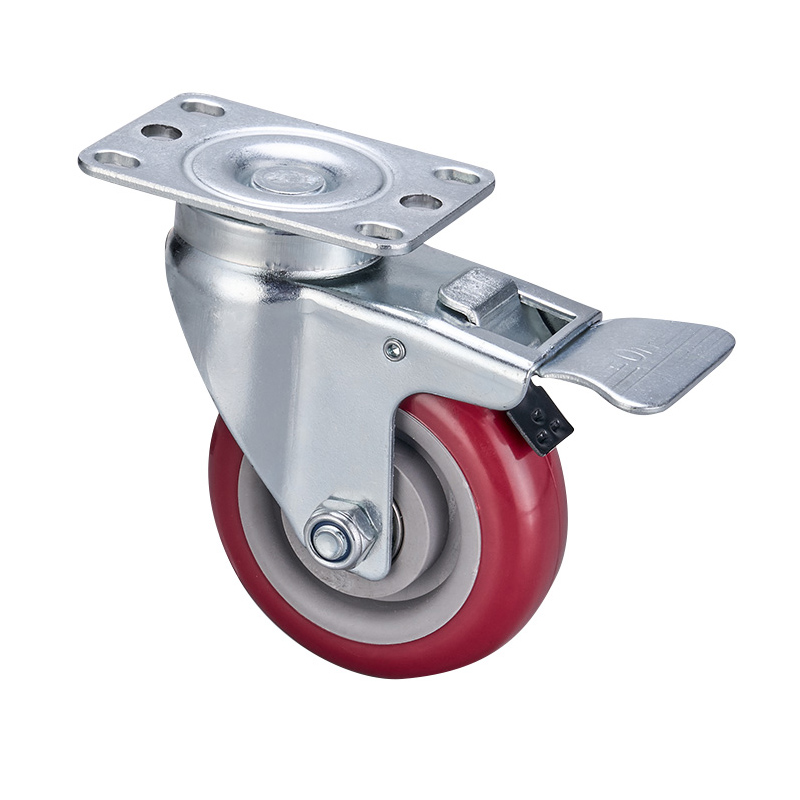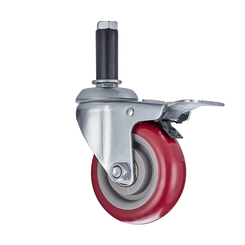 PVC red double-bearing medium-sized casters, 3-inch / 4-inch / 5-inch specifications with expansion rubber and lean tube casters